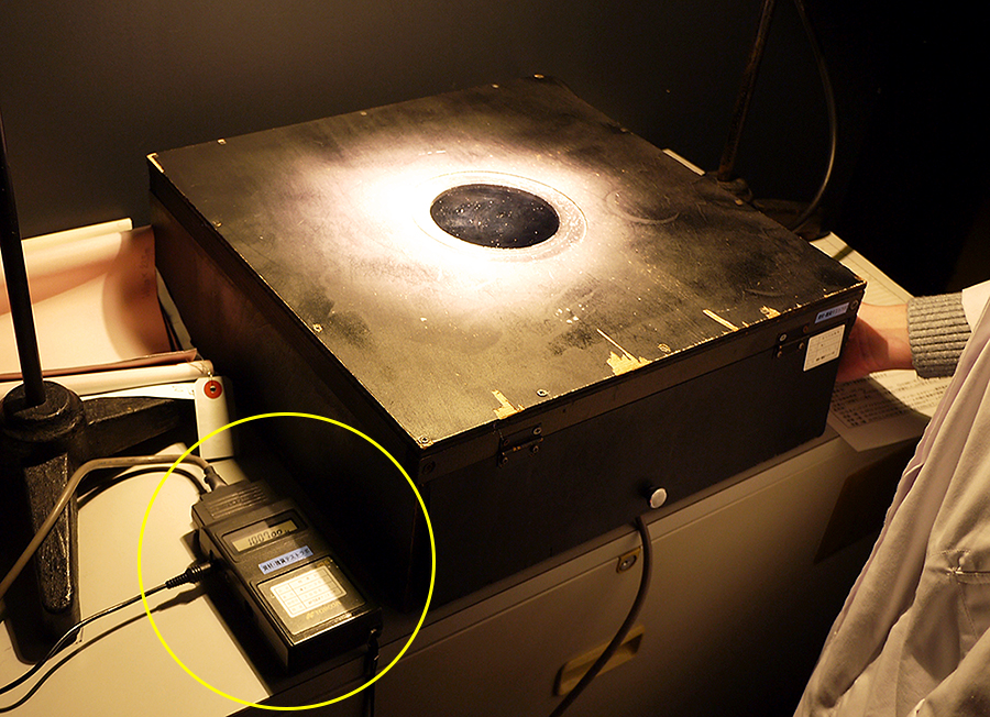 すると、照度計の値は『0』lx(ルクス)を表示しました。全く光を透過していないことを示しています。